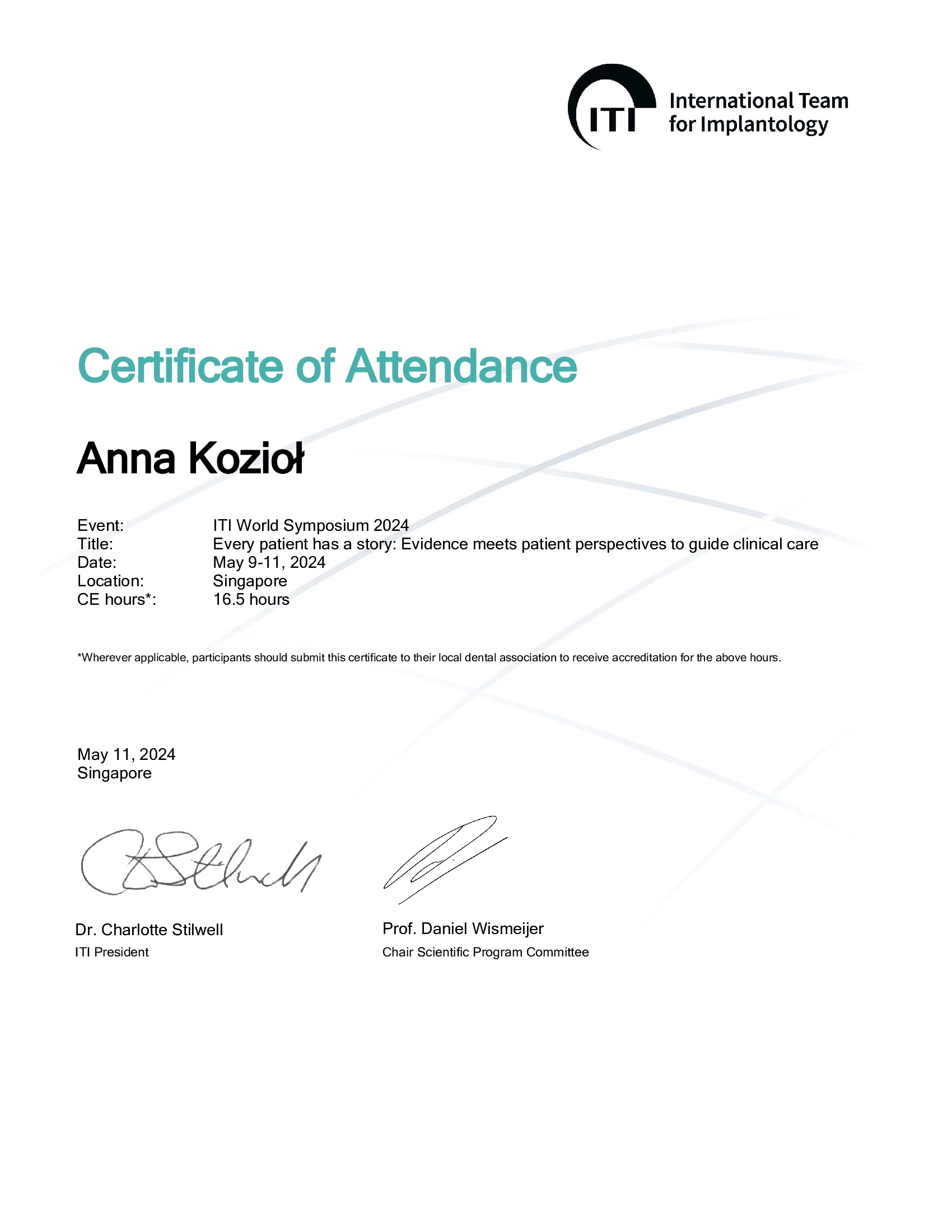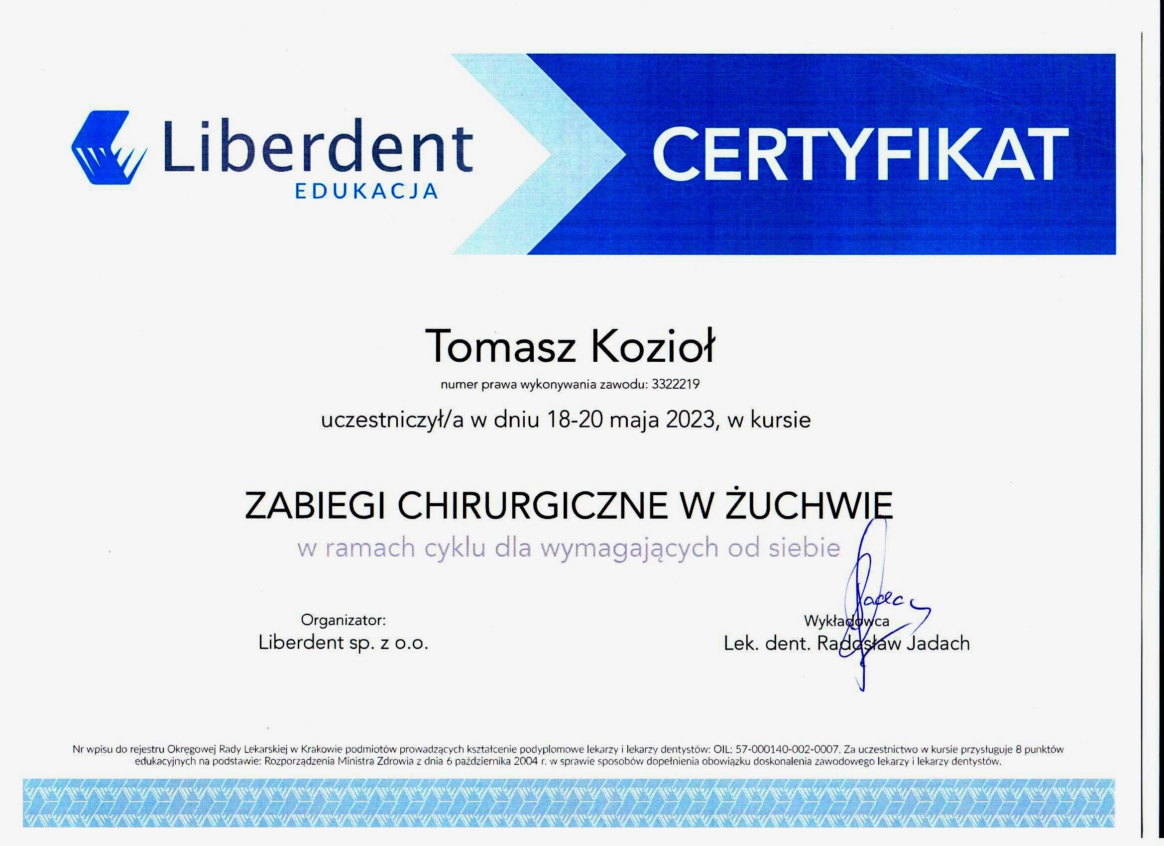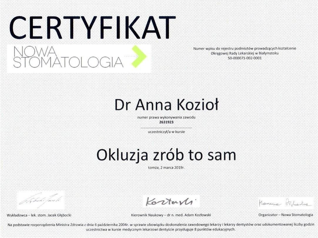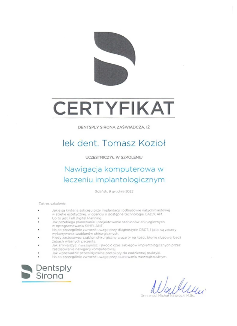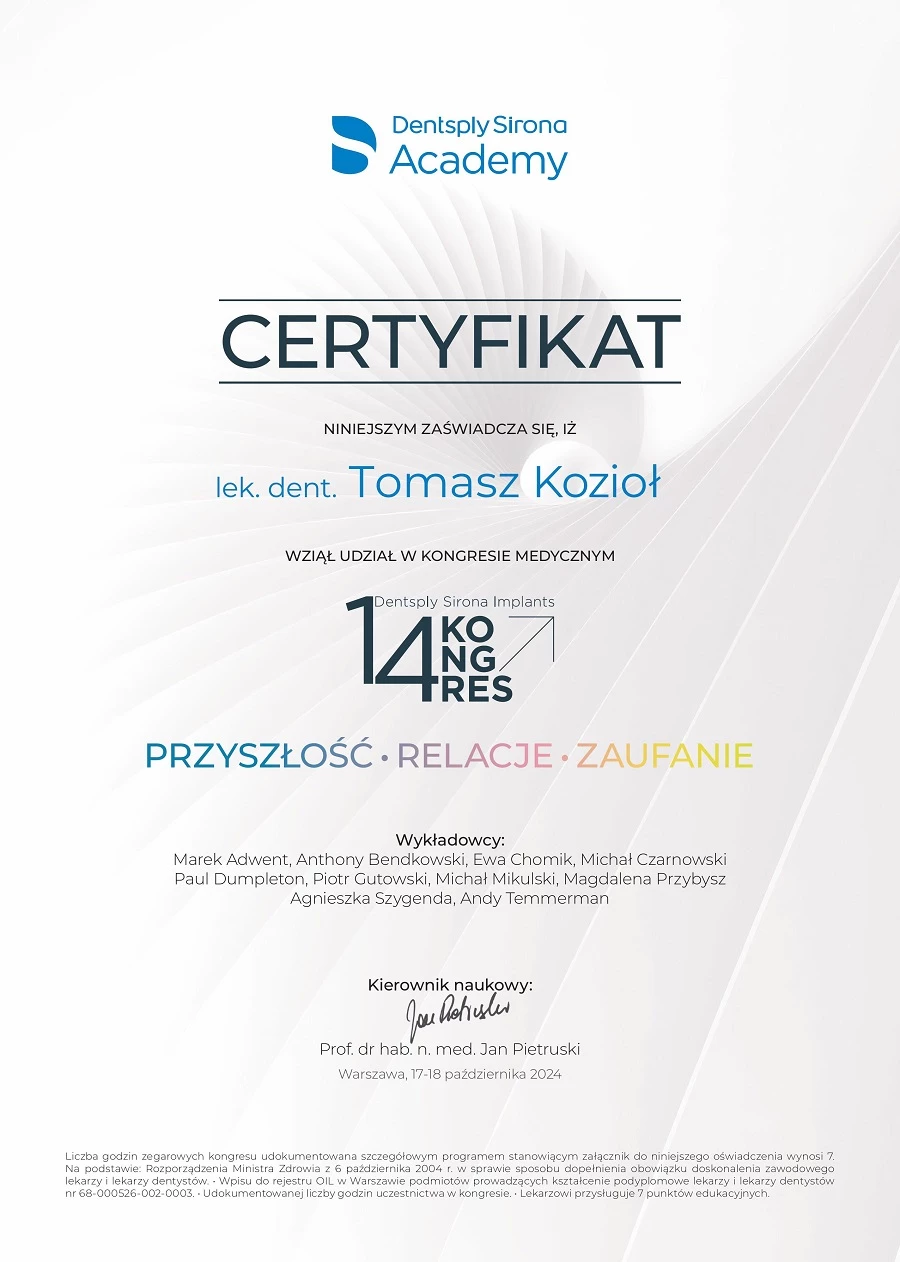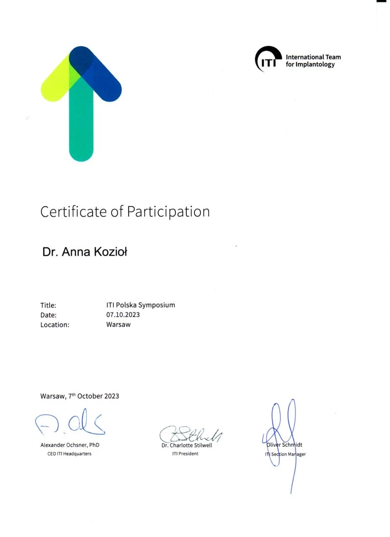 Członek ITI (International Team for Implantology).