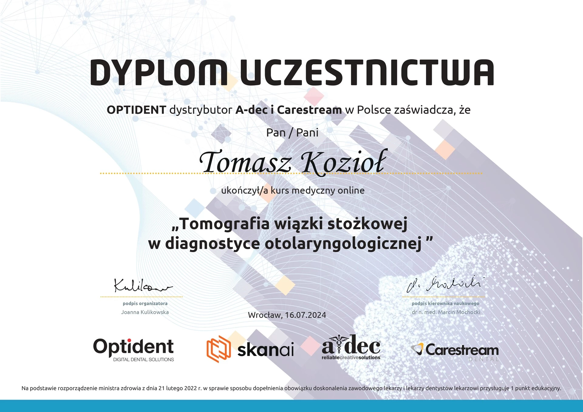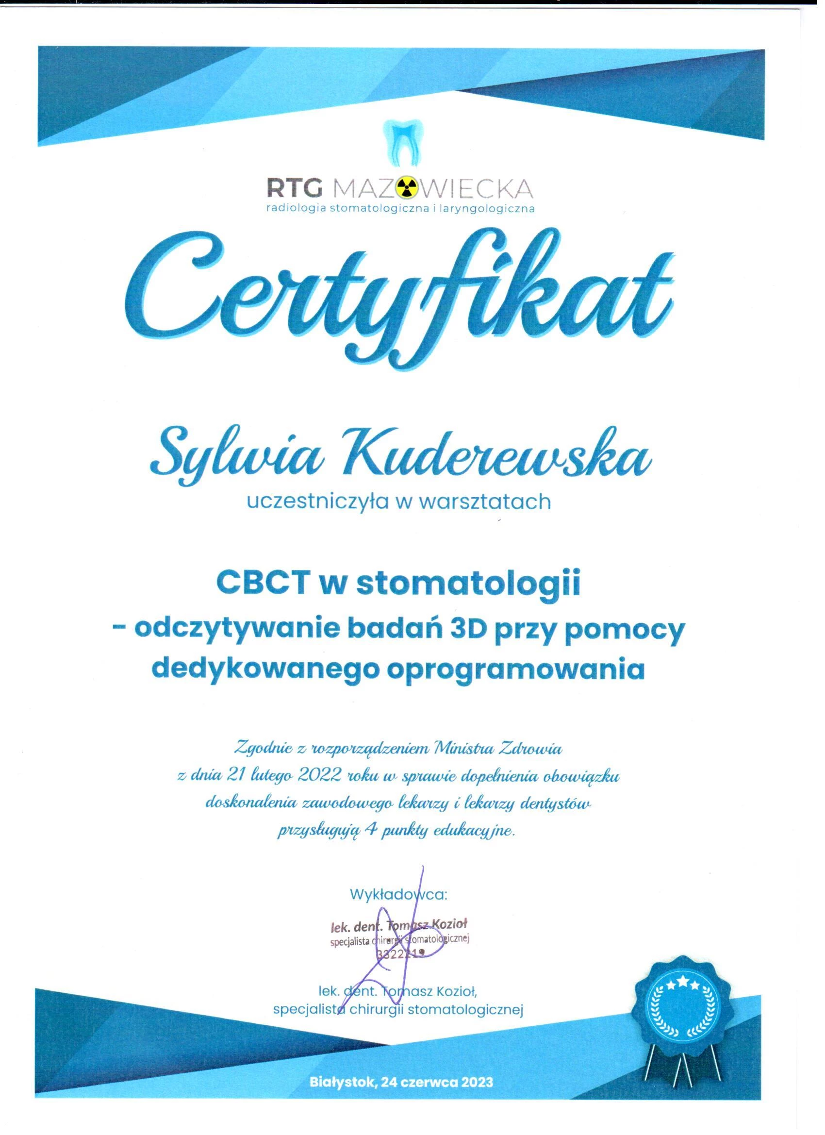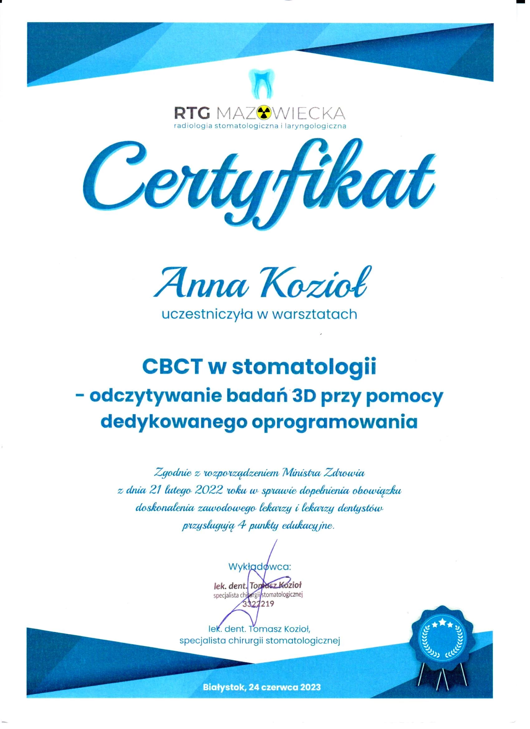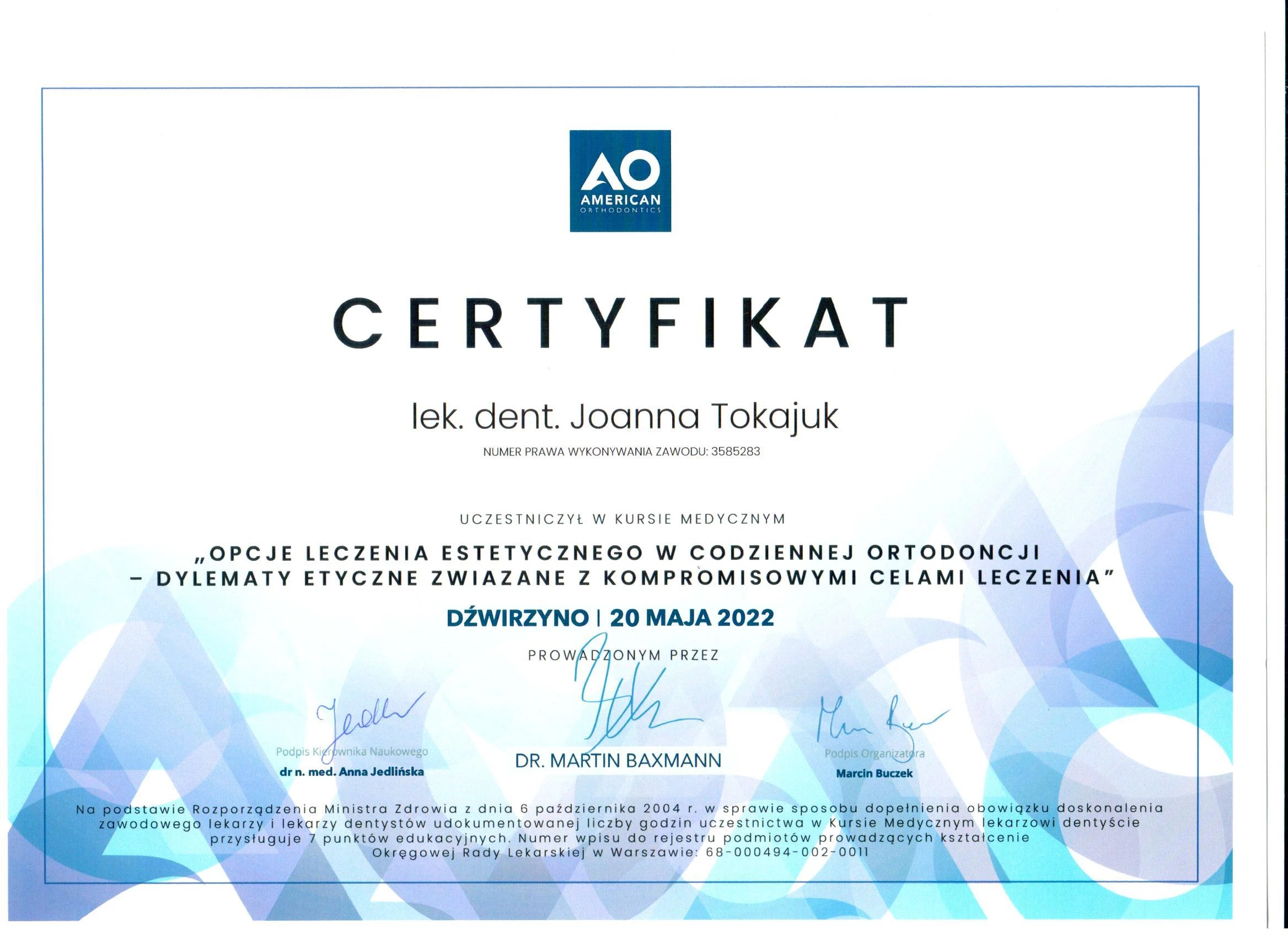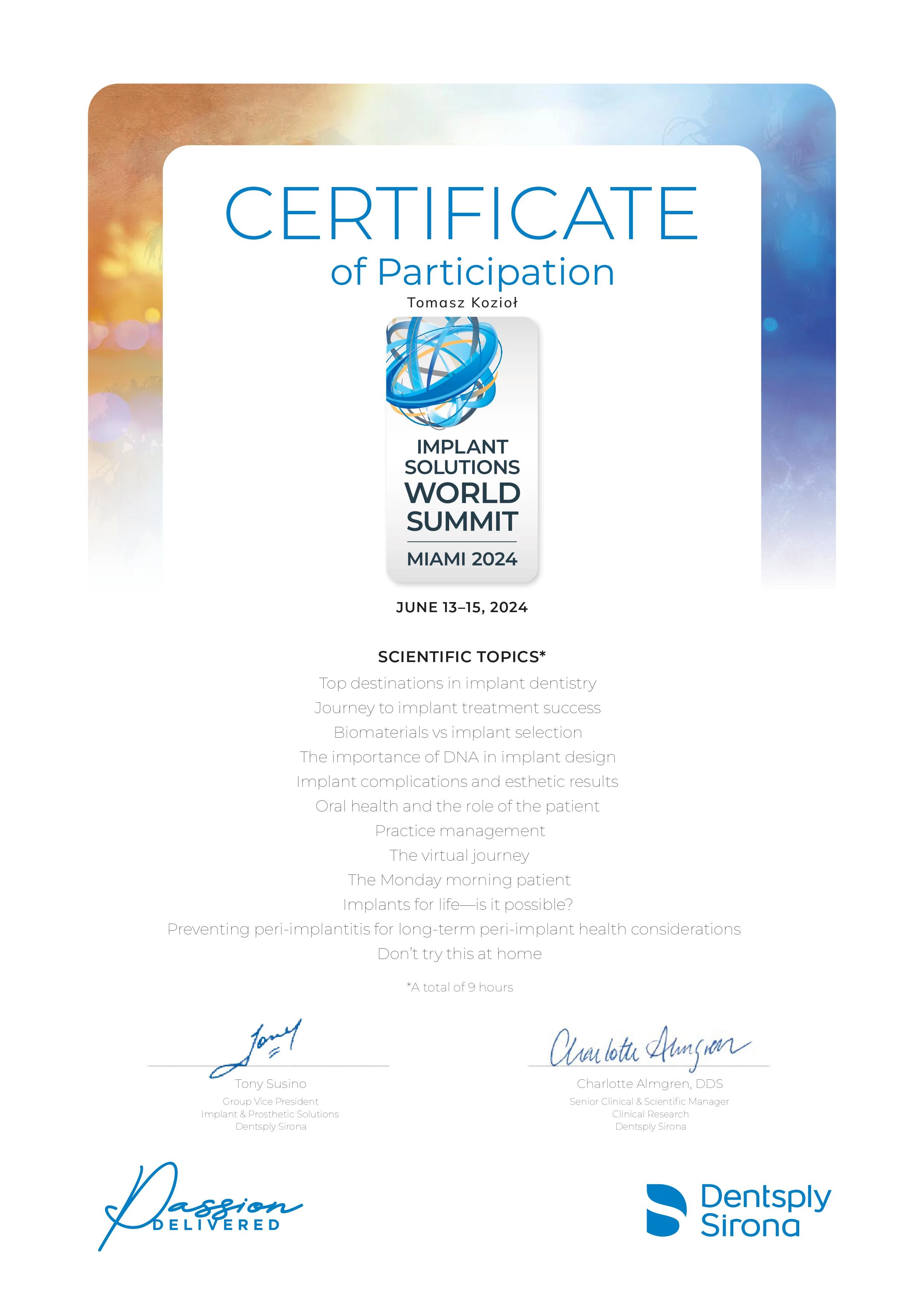 Członek ITI (International Team for Implantology).