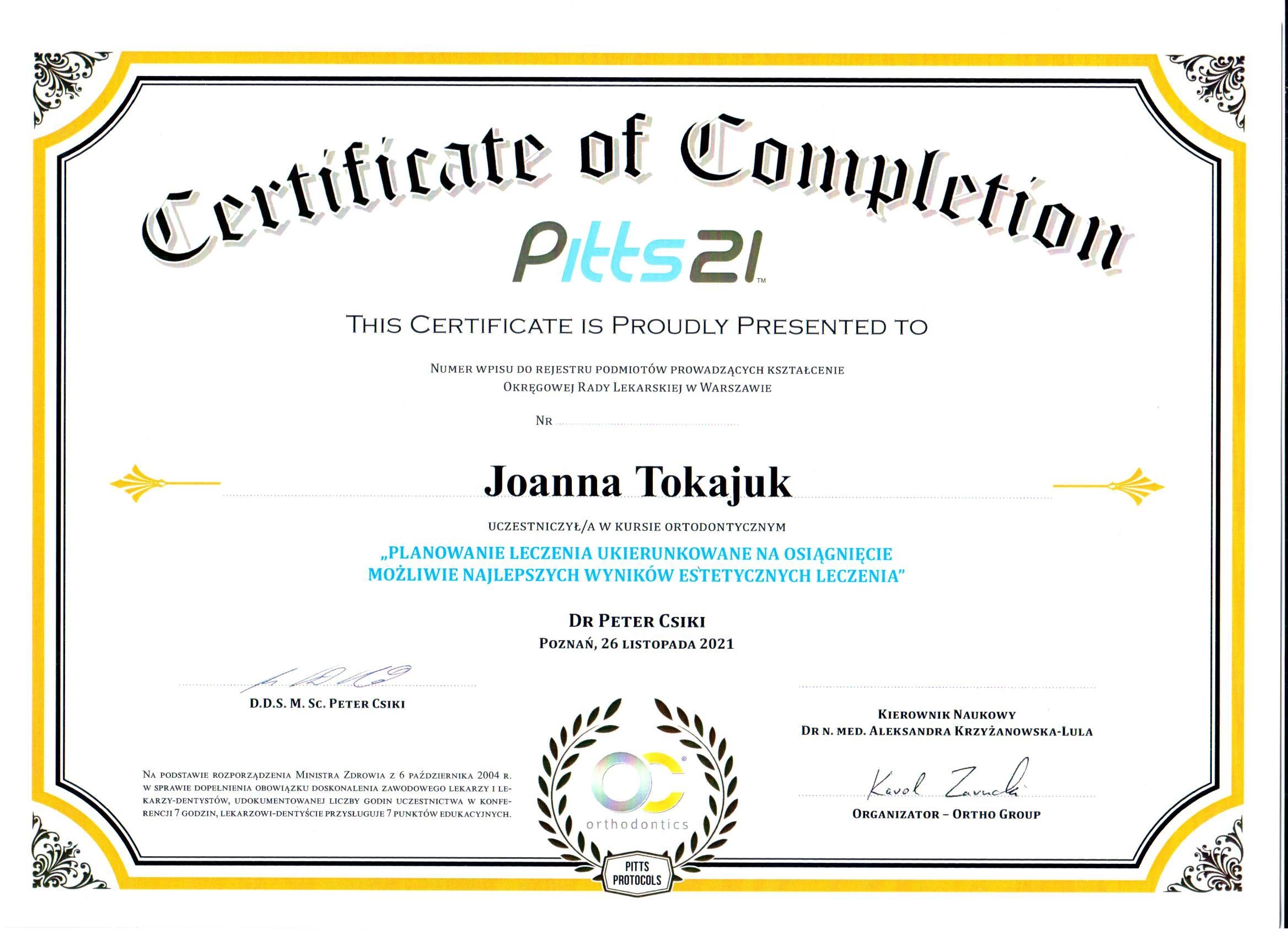 Członek ITI (International Team for Implantology) i PTS (Polskiego Towarzystwa Stomatologicznego).