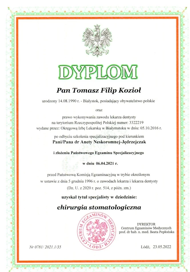 Specjalista chirurgii stomatologicznej, lekarz dentysta