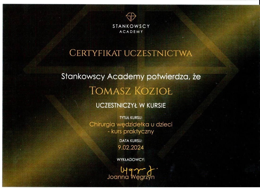 Członek ITI (International Team for Implantology) i PTChSiST (Polskiego Towarzystwa Chirurgii Stomatologicznej i Szczękowo-Twarzowej).