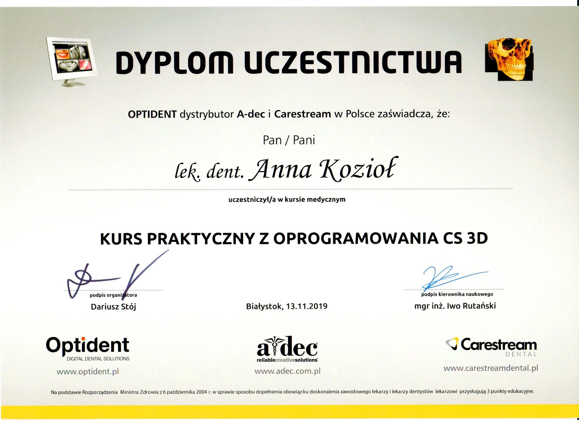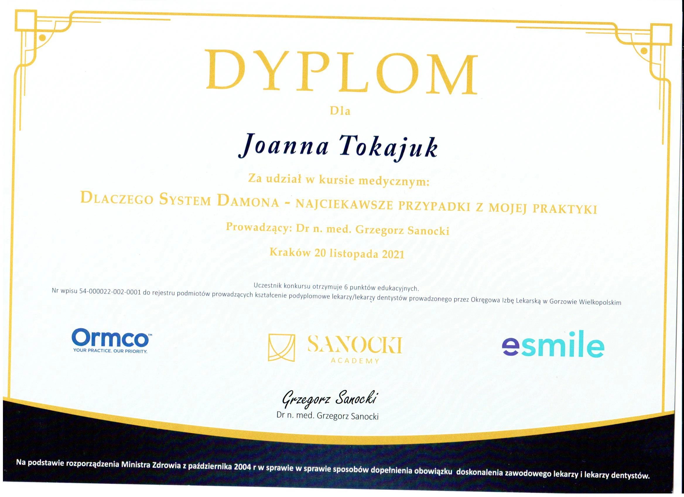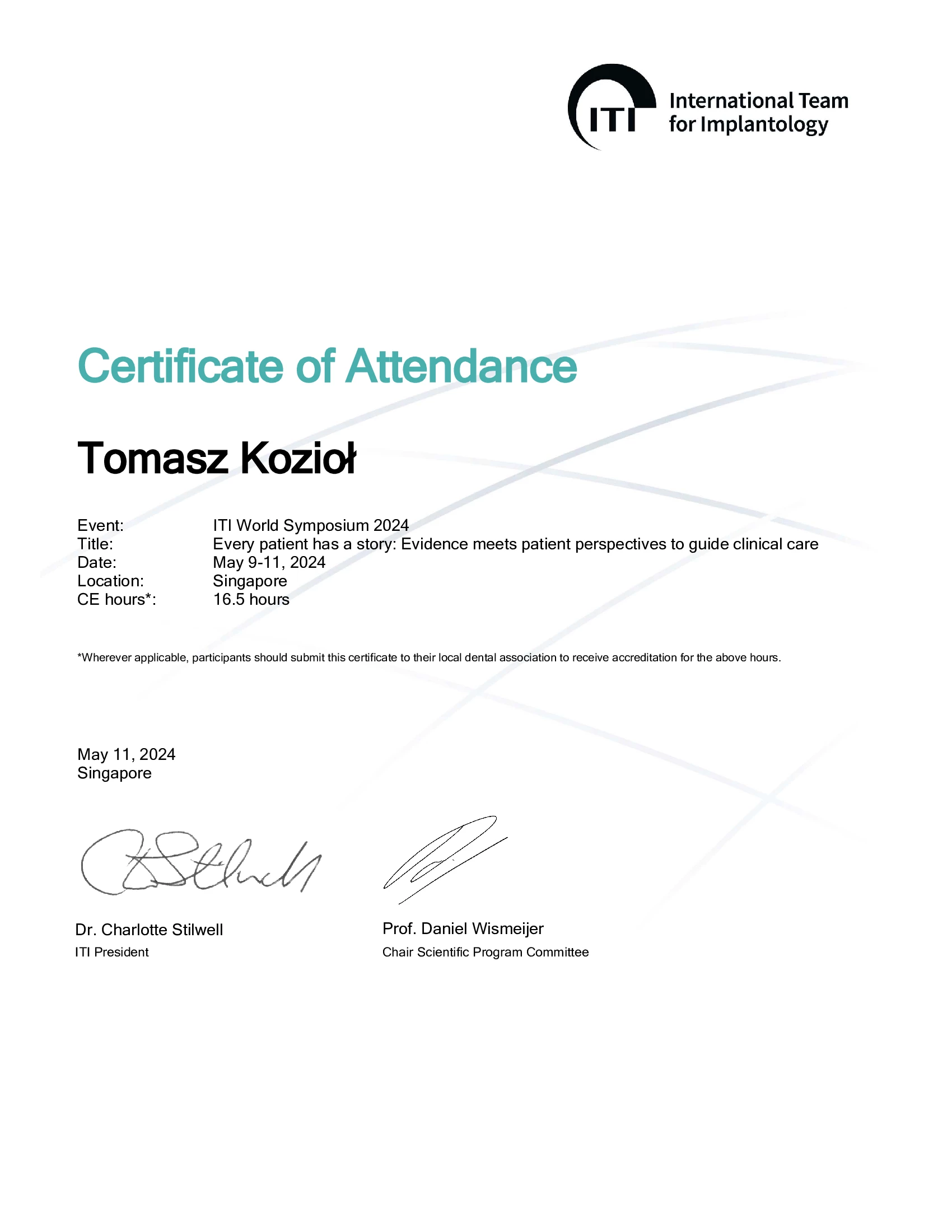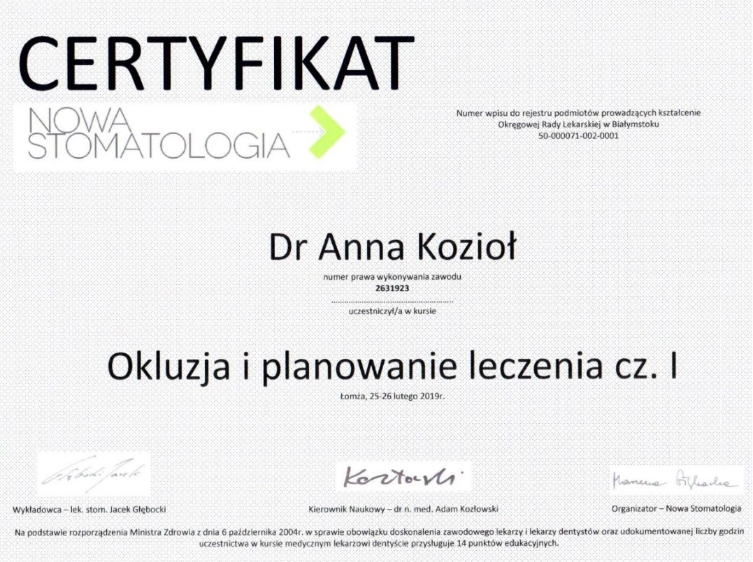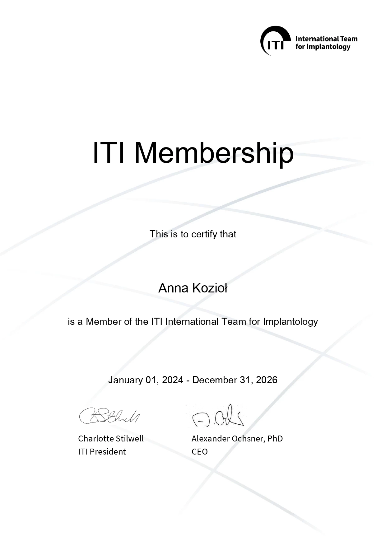 Członek ITI (International Team for Implantology).