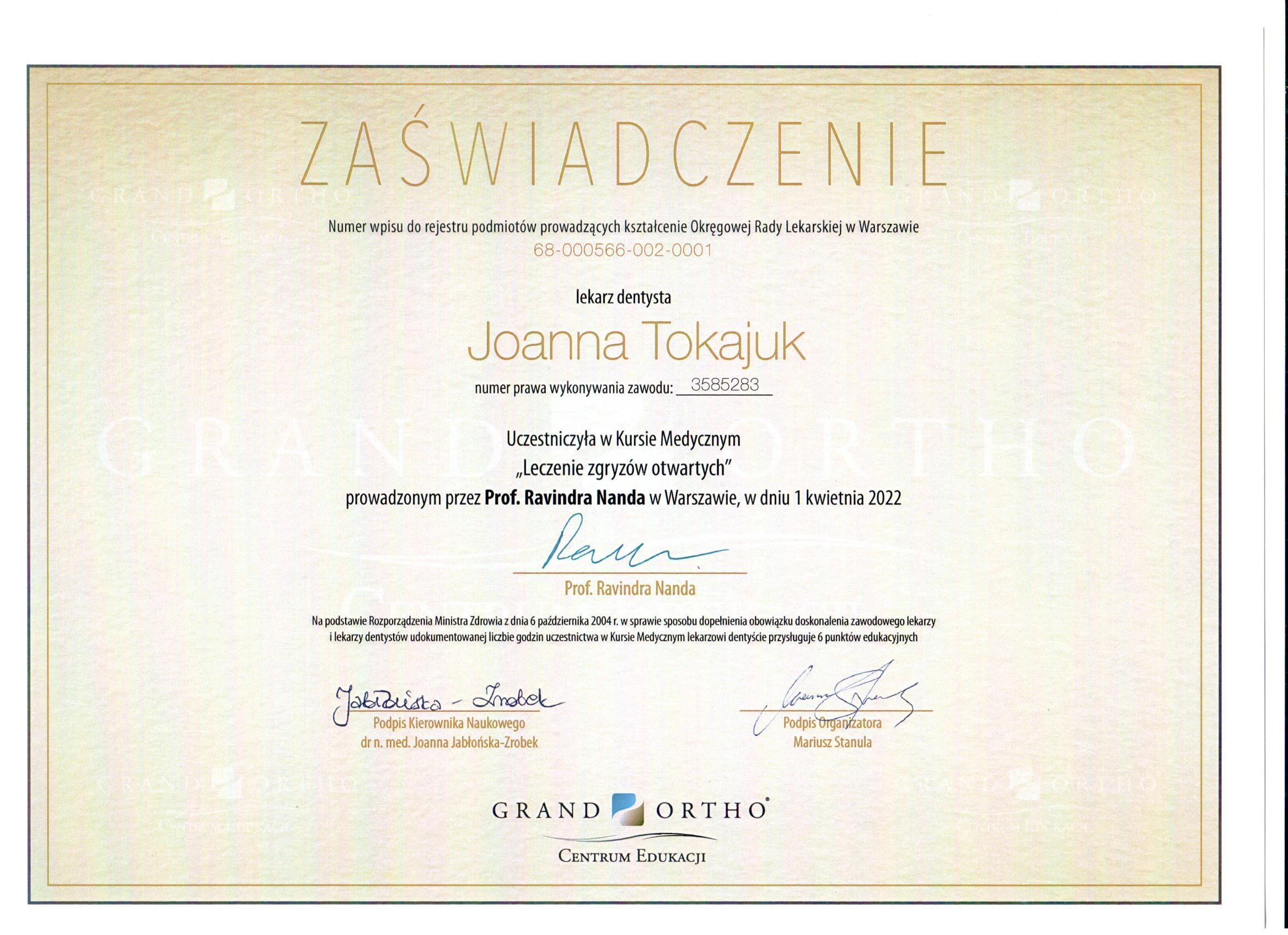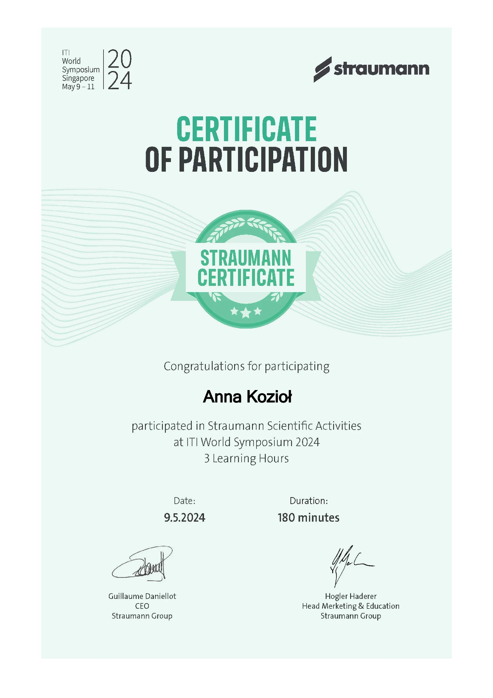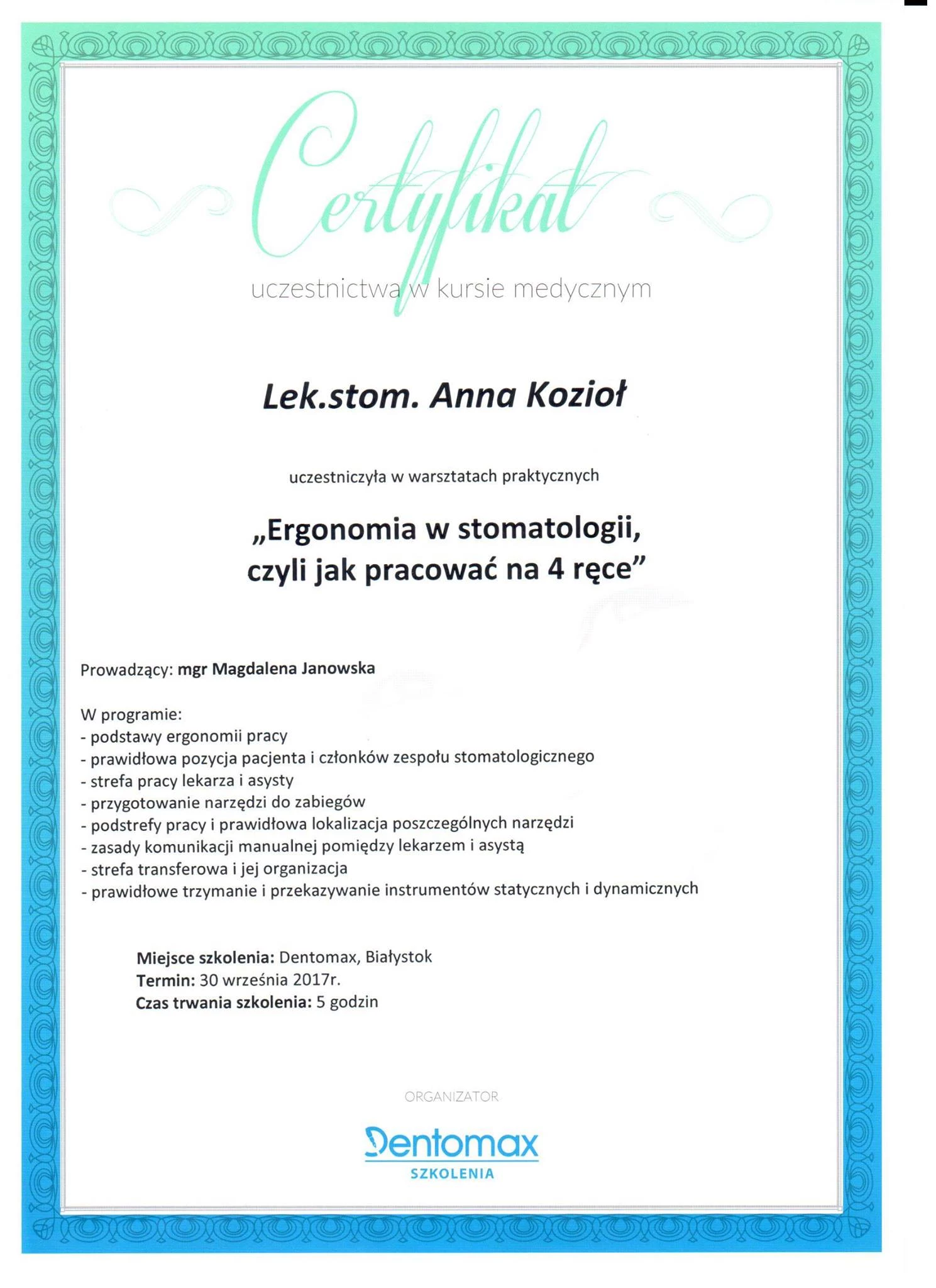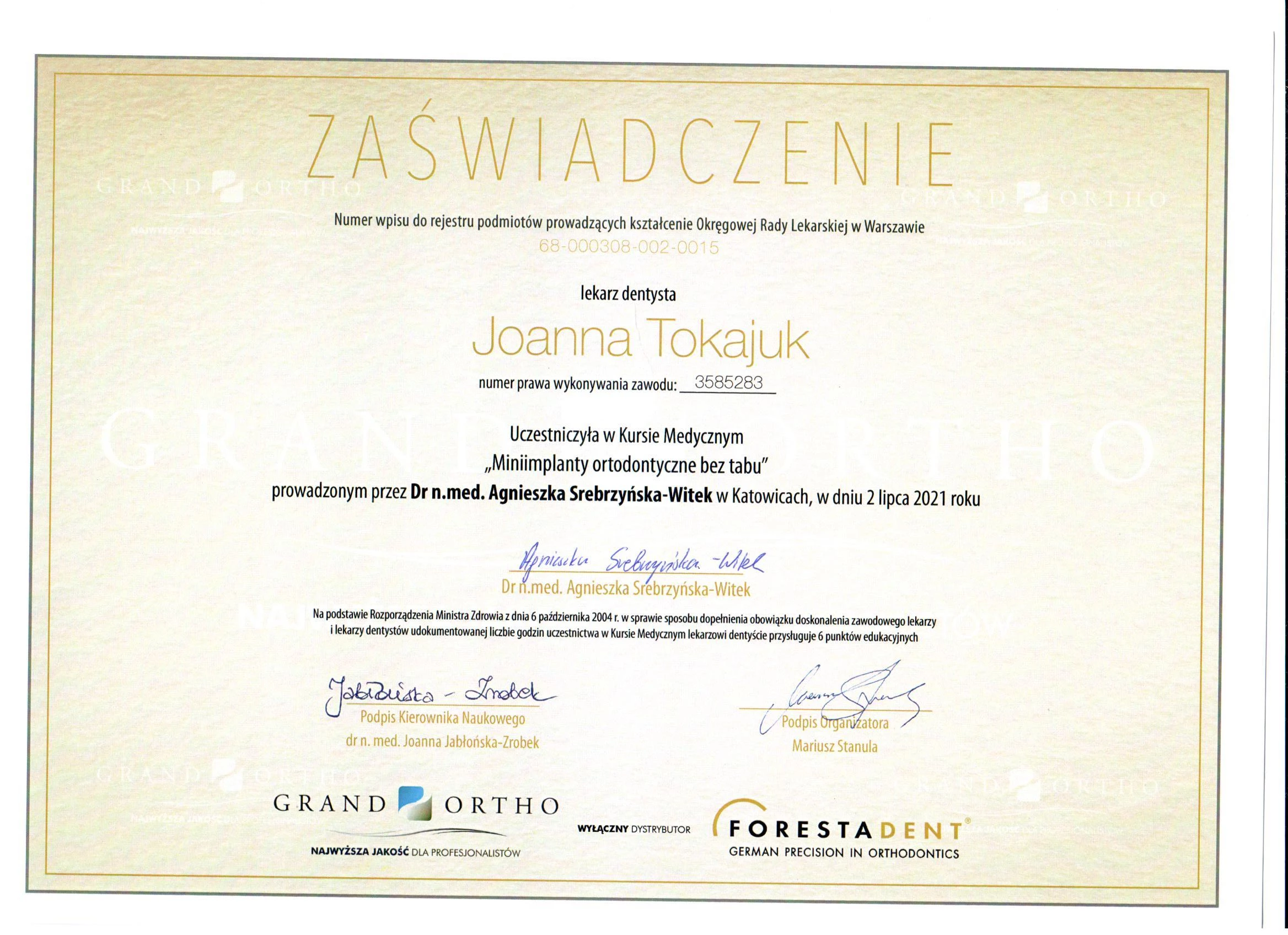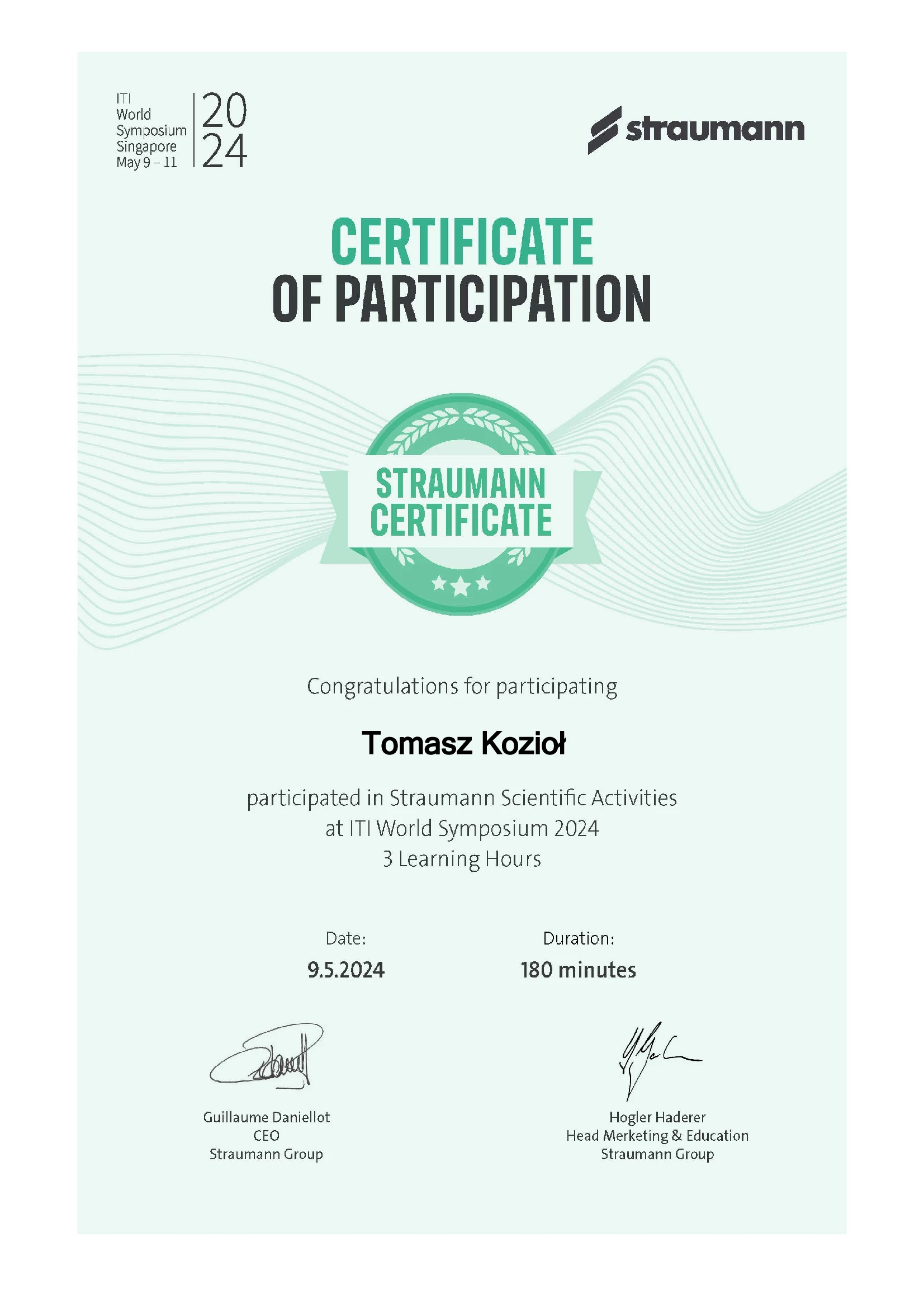 Członek ITI (International Team for Implantology).