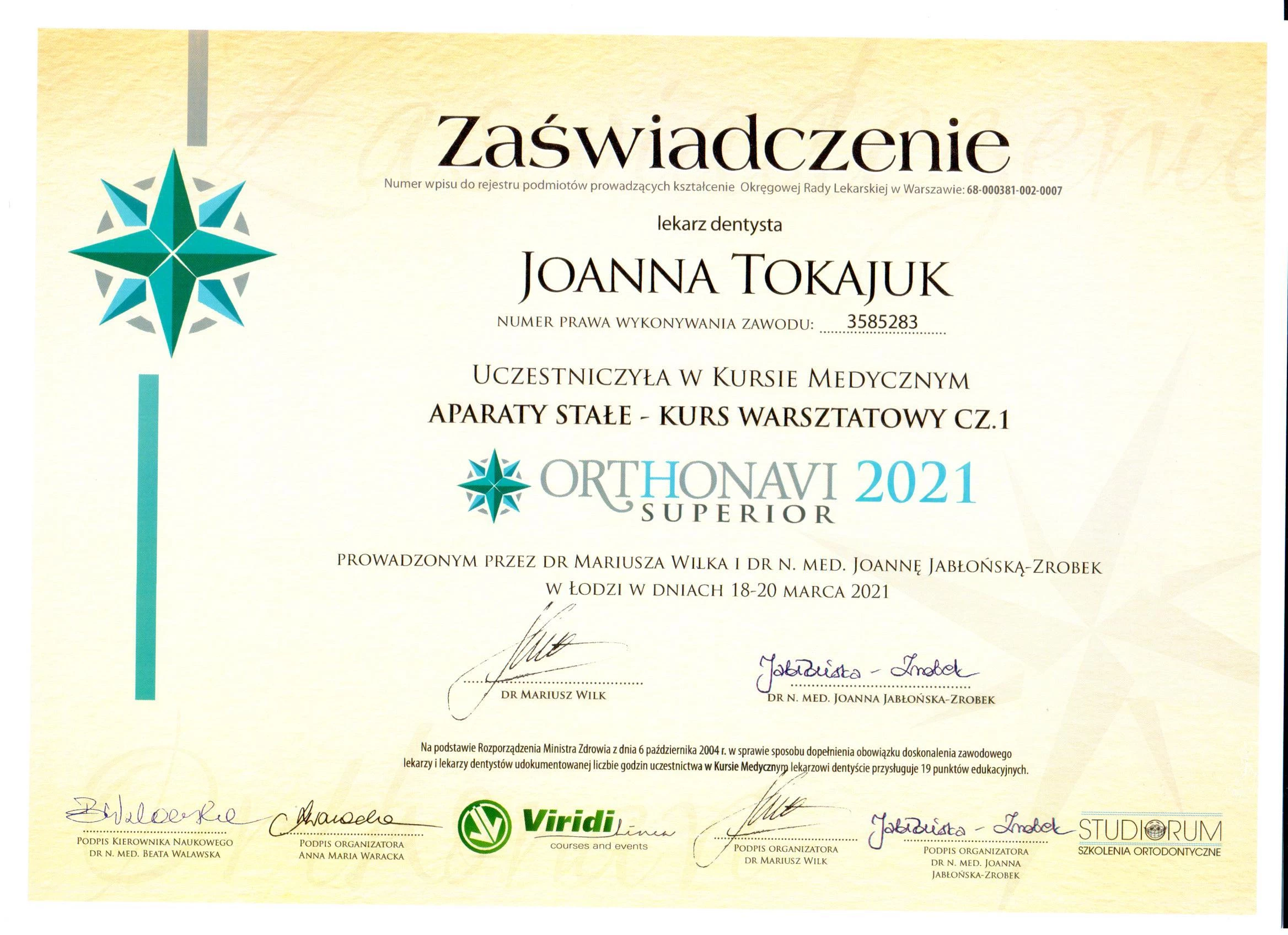 Członek ITI (International Team for Implantology) i PTS (Polskiego Towarzystwa Stomatologicznego).