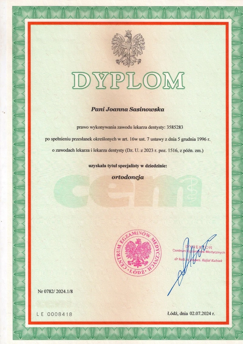 Specjalista ortodoncji, lekarz dentysta
